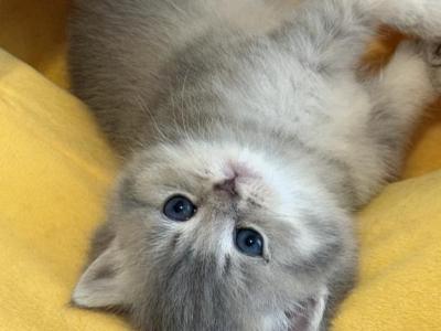 A gorgeous, short-haired male. His mother is very caring, even playing with them. This is her first litter, so the kitty’s are very tactile, social, and simply adorable! There are only two in the litter, so they have plenty of milk for development and attention from their mother! So cuddly and sweet.